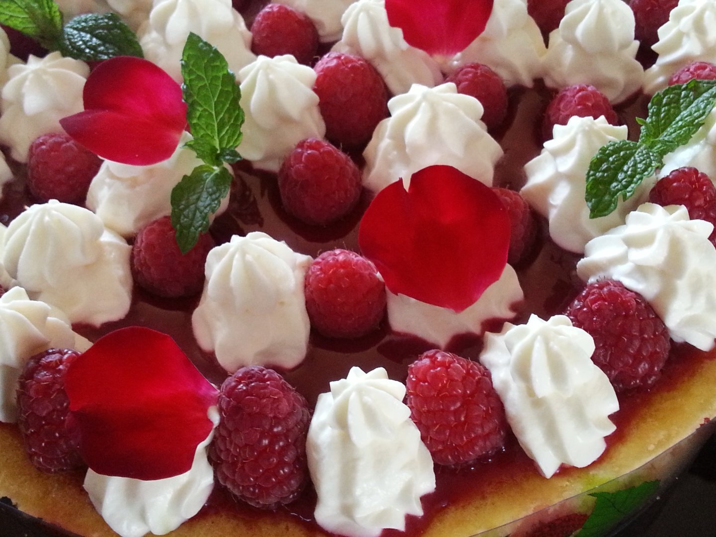 Recette Tarte Aux Framboises Chantilly Au Geranium Creme Patissiere A La Confiture De Lait 750g